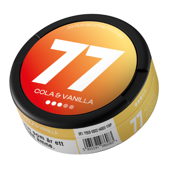 Du kan köpa 77 cola vanilj snus direkt på GONIC.se, där du hittar produkten i vårt sortiment av 77 Nicotine Pouches med snabb leverans.