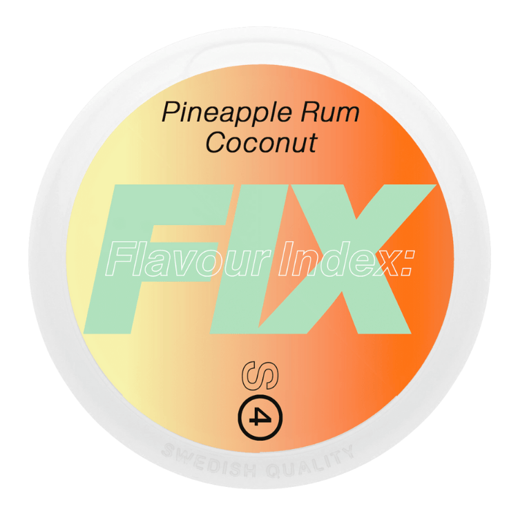 FIX Pineapple Rum Coconut #4 bjuder på en fruktig smak av ananas, rom och kokos i slim-format. Detta tobaksfria vitt snus har en extra stark nikotinhalt som ger en intensiv upplevelse.