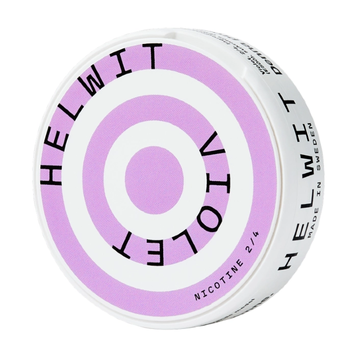 Helwit Violet Slim bjuder på en blommig violsmak med söt ton i ett slimmat format. Detta tobaksfria vitt snus har en normal nikotinhalt som passar för en mildare upplevelse.
