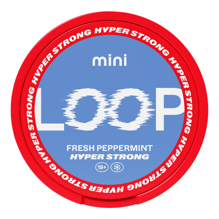 Som vitt snus är produkten framtagen för att rinna minimalt och ge en torrare känsla i munnen. Nikotinhalten är hög och produkten är anpassad för användare med vana av starkare nikotinprodukter. Loop Fresh Peppermint Mini Hyper är tobaksfri och innehåller nikotin i kombination med växtfiber och aromer.