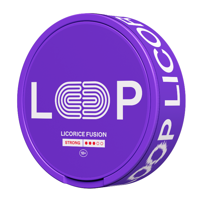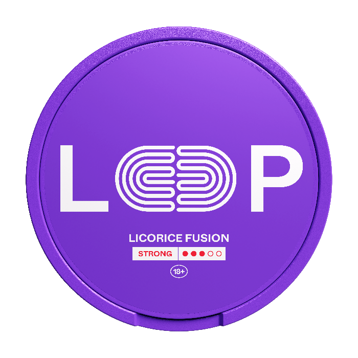 LOOP Licorice Fusion Strong är ett tobaksfritt snus i slim-format med en unik smakprofil av saltlakrits och hallon. Varje prilla innehåller 9,4 mg nikotin, vilket ger en stark och balanserad nikotinupplevelse för dig som söker en fruktig och kryddig smakprofil.