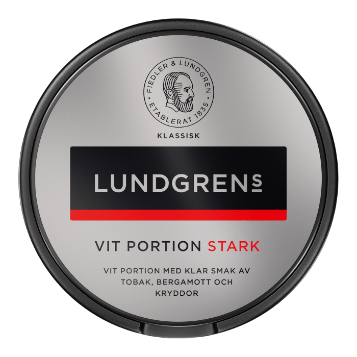 Lundgrens Vit Portion Stark kombinerar traditionell svensk snussmak med stark nikotineffekt och modern vit portion-teknik.