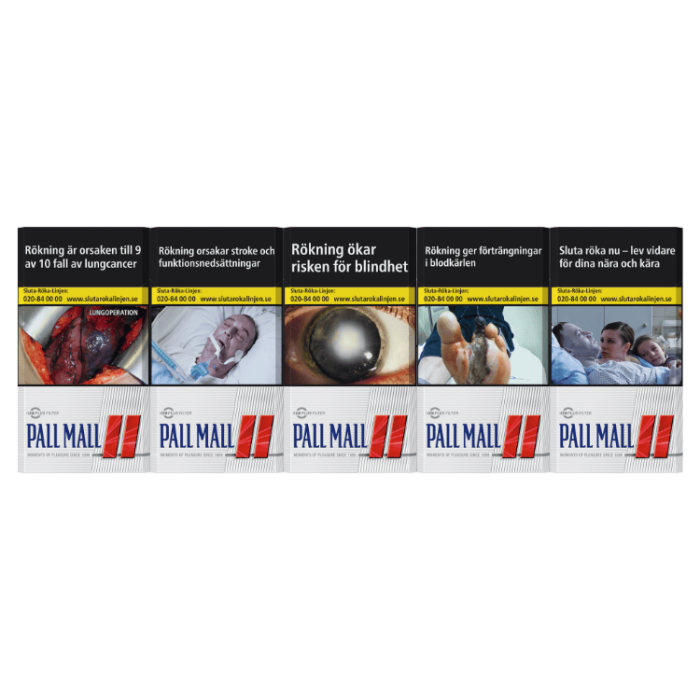Pall Mall Red 100s är filtercigaretter i 100s-format, vilket innebär att cigaretterna är längre än standard king size. Produkten tillhör Pall Malls klassiska Original-sortiment och säljs färdigförpackad i askar.