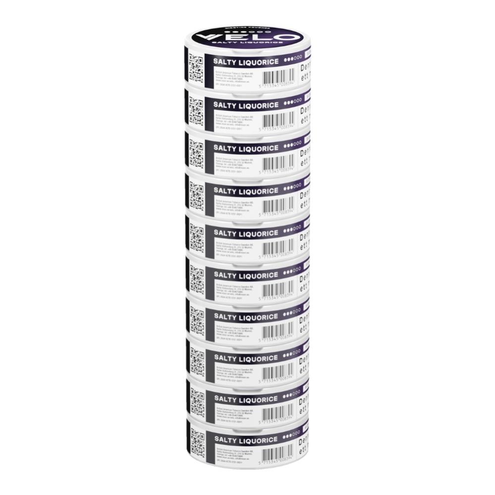 VELO Salty Liquorice är ett tobaksfritt vitt snus i slimformat från British American Tobacco. Varje dosa innehåller 20 prillor med en intensiv smak av lakrits, anis och salmiak. Med en nikotinhalt på 10 mg per prilla är detta ett starkt snus som passar perfekt för dig som söker en distinkt smak med tydlig nikotineffekt – utan tobak.