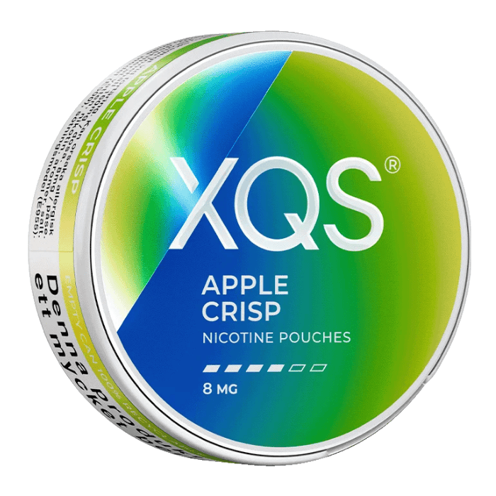 XQS Apple Crisp är ett vitt slim snus med fräsch äppelsmak, balanserad fruktighet och stabil nikotineffekt i ett modernt, tobaksfritt format.