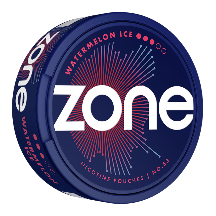 ZONE No53 Watermelon Ice Strong är ett tobaksfritt vitt snus i slim-format med söt vattenmelon och kylande mentol, kombinerat med stark nikotinstyrka.